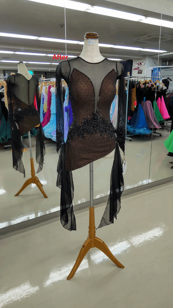 単なるデザイン変更ではなく、「踊りの動線の沿った機能美」を重視した仕上げで、多くのお客様から「動きやすくなった」「腕のラインが美しく見える」とご好評をいただいております。