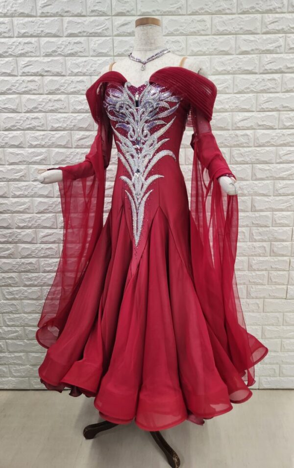 競技用社交ダンスドレスは、単なる舞台衣装ではなく、「評価されるための衣装」として設計されています。競技会では、広いフロアの中で複数のカップルが同時に踊るため、審査員の視線は常に動き続けています。その中で瞬時に目に留まる存在感を放つことが求められます。