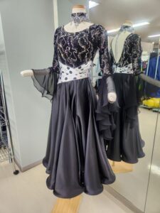 一方で、本番では「舞台映え」が何より大切です。ストーンやスパンコールで装飾された豪華なドレスは、観客の視線を引きつけ、ダンスをよりドラマチックに見せてくれます。