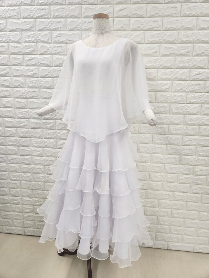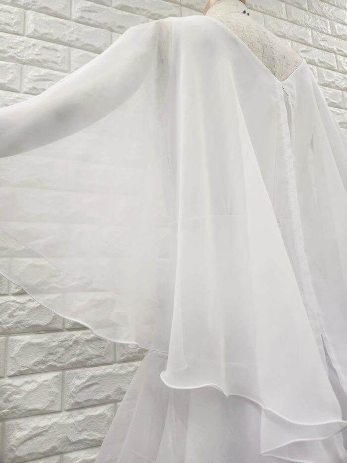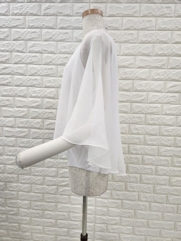 スタイル:ジョーゼットのヒラヒラがエレガンスな白のレオタード式トップス