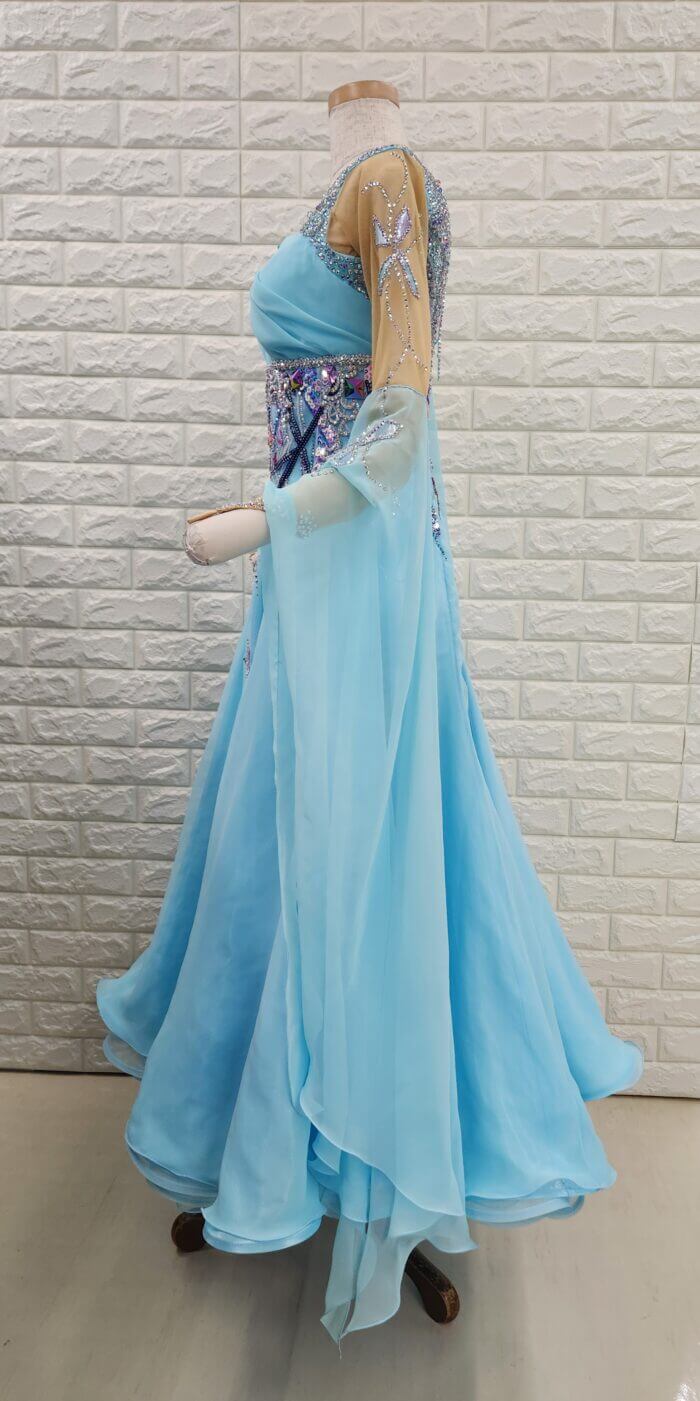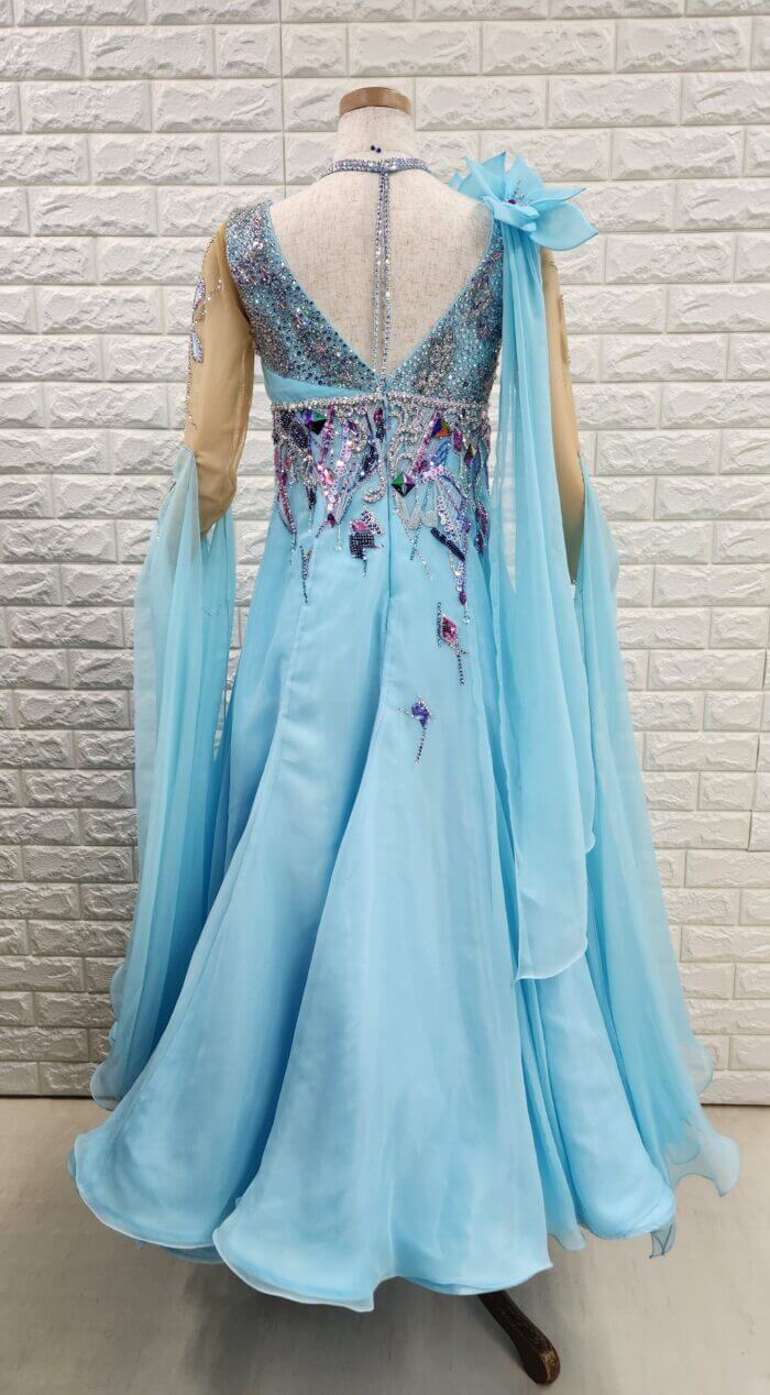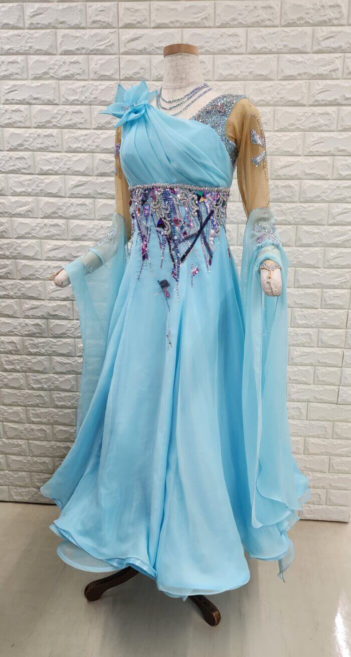 【試着・レンタル・購入】社交ダンスドレス MLサイズ うすブルー スタンダードドレス949-ML