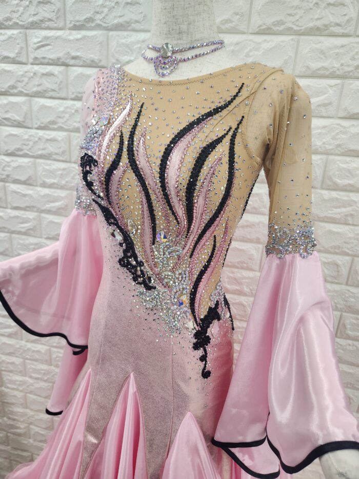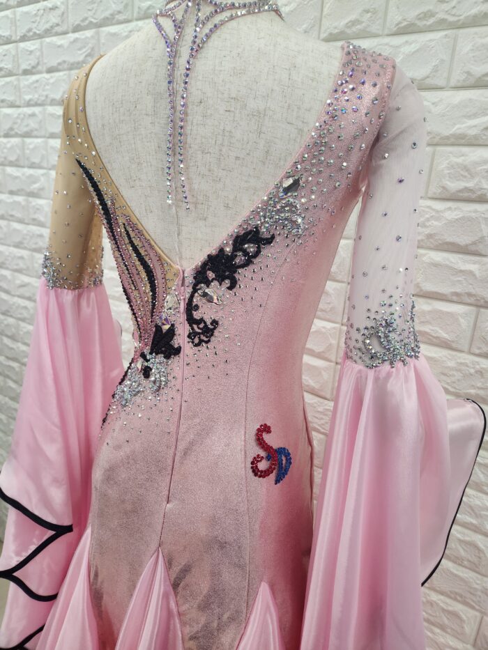 スタッフコメント:ベビーピンク一色ですとボケてしまうところ、黒の柄・ふちどりを入れることによって、ハッキリとして競技会にもGOOD!