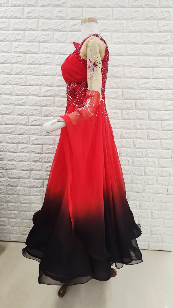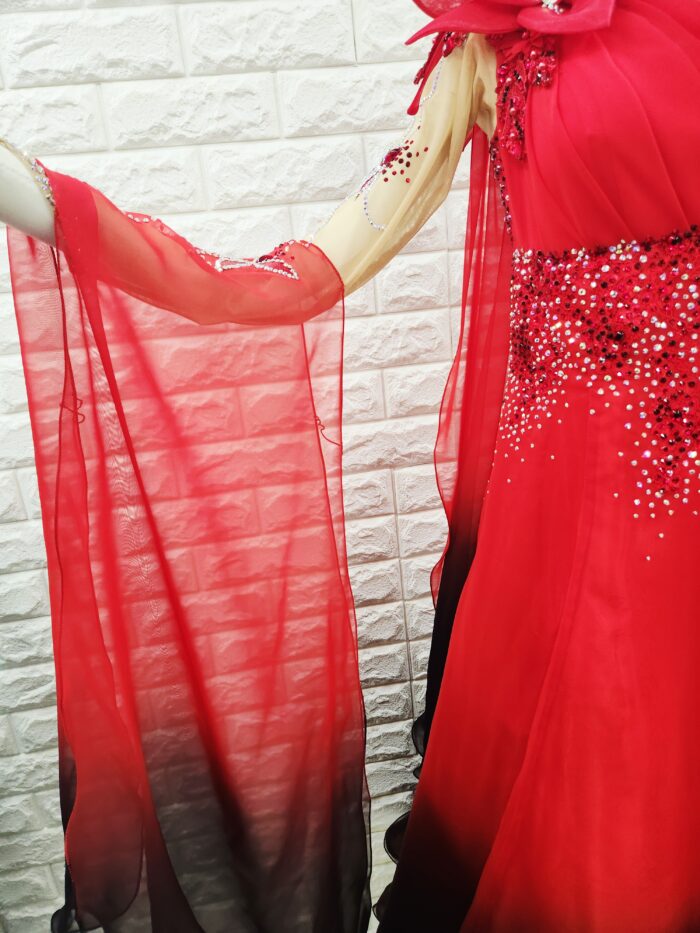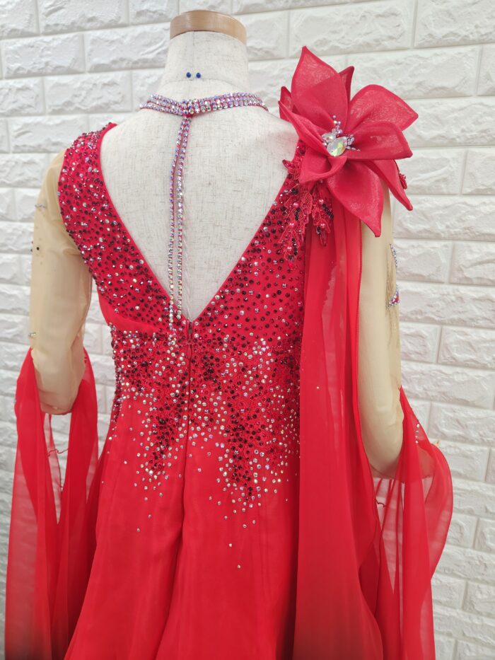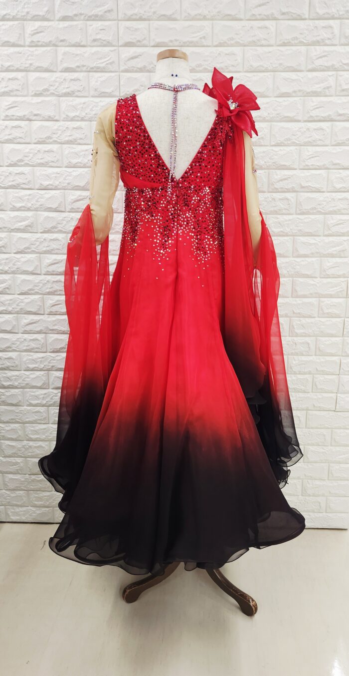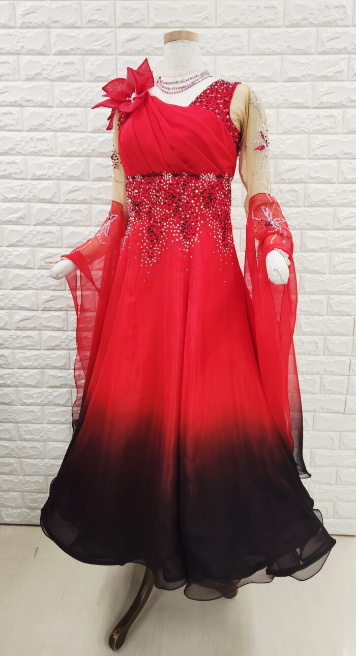 【試着・レンタル・購入】社交ダンスドレス Lサイズ 赤黒 スタンダードドレス936-L