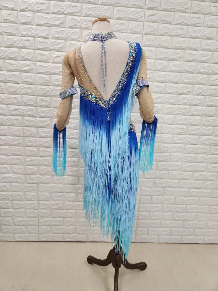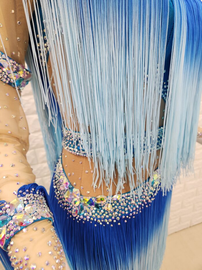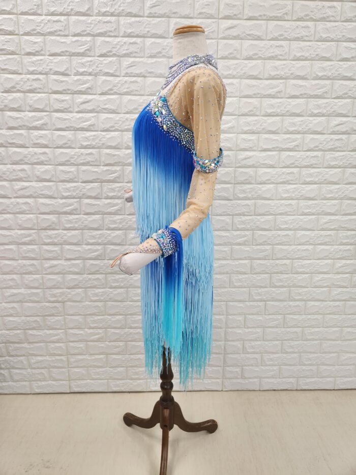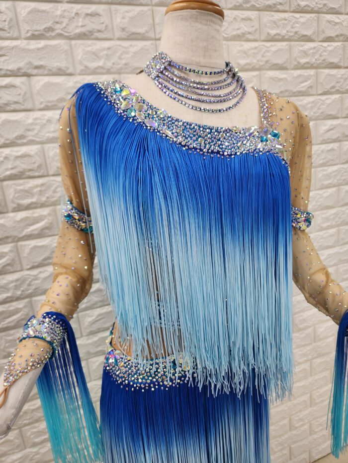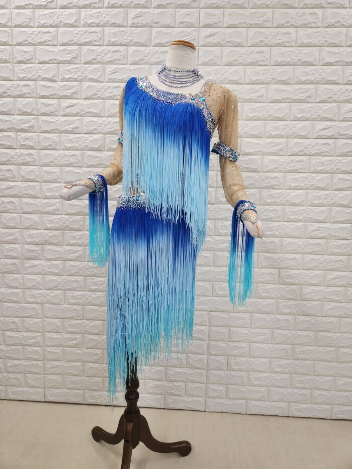 スタイル:全体にフリンジをたっぷりと使用したグラデーションの美しいラテンドレスで動きも抜群。