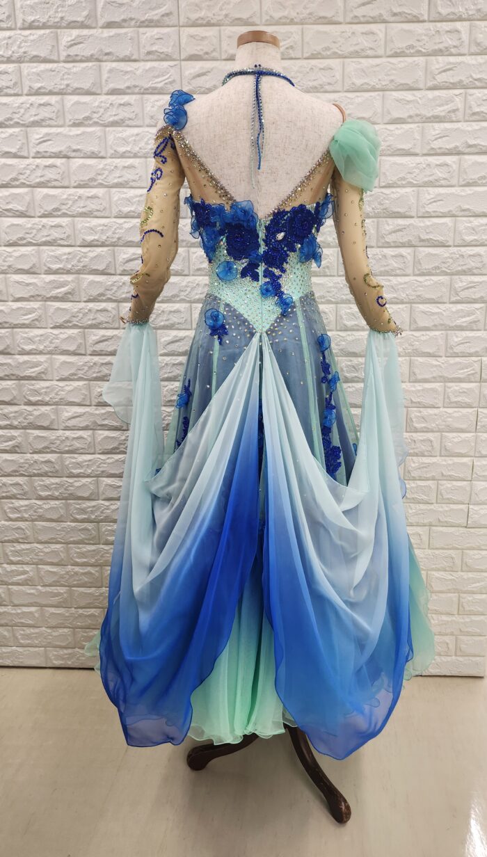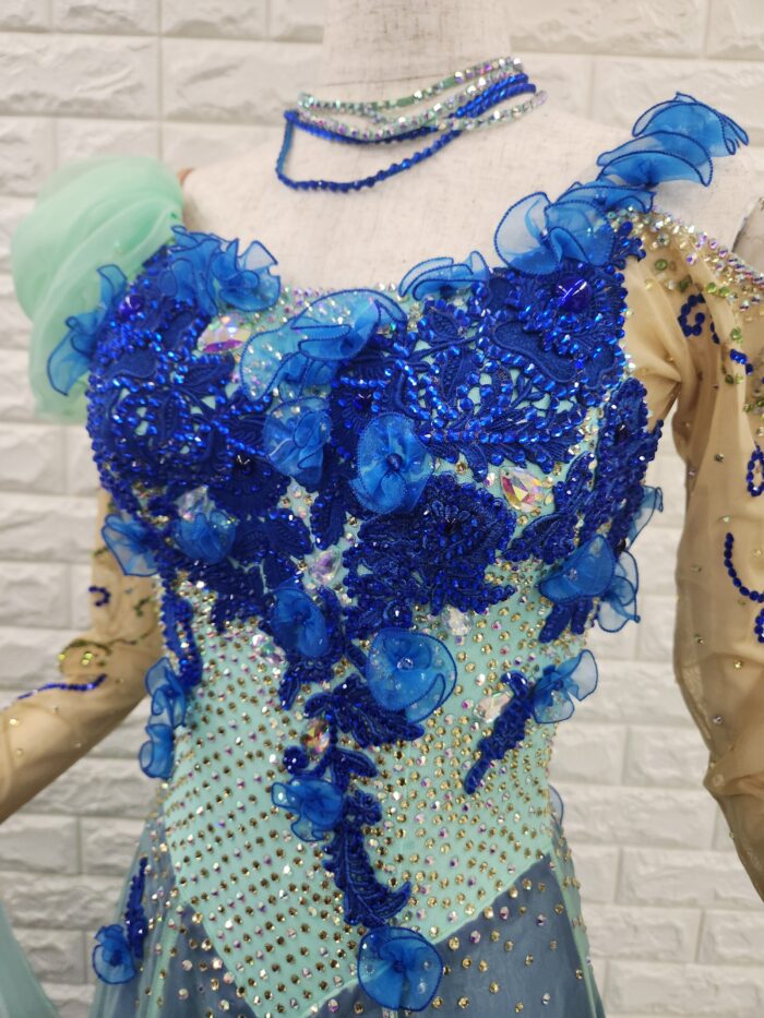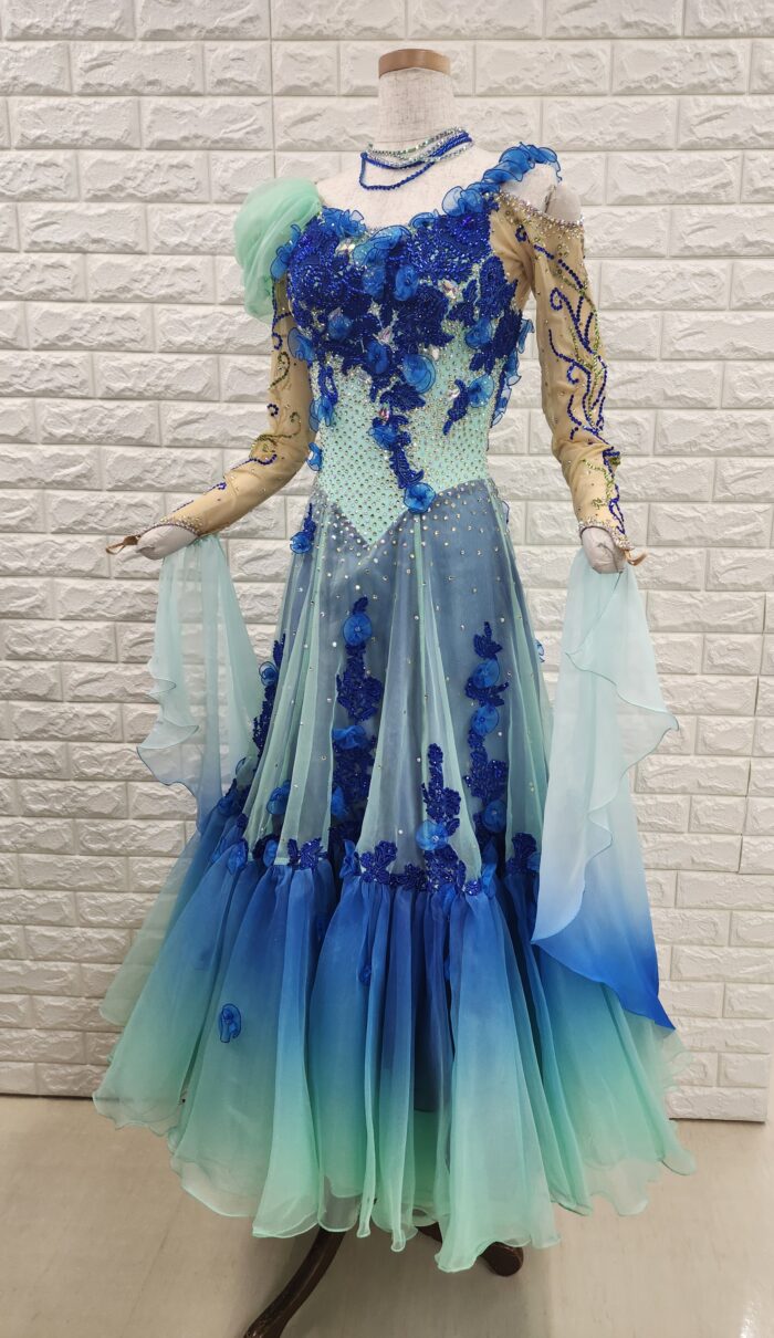 【試着・購入】社交ダンスドレス 委託 Sサイズ ブルーミント スタンダードドレスNo.81