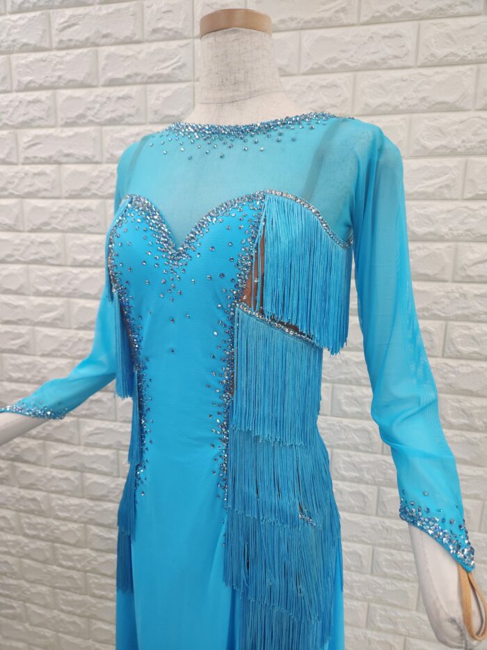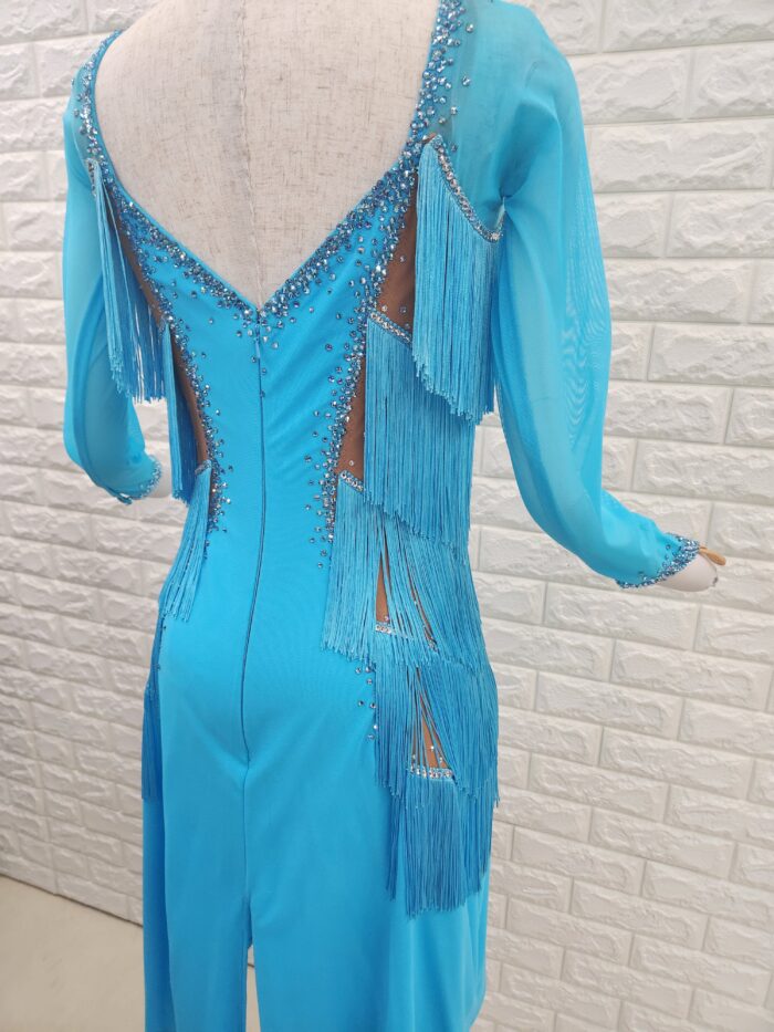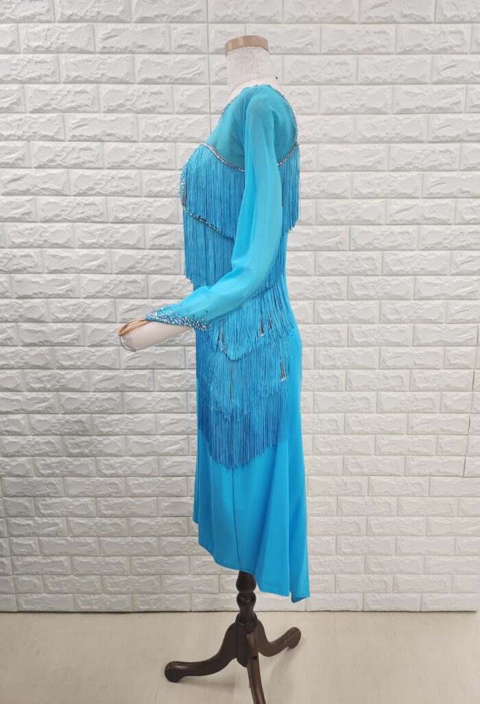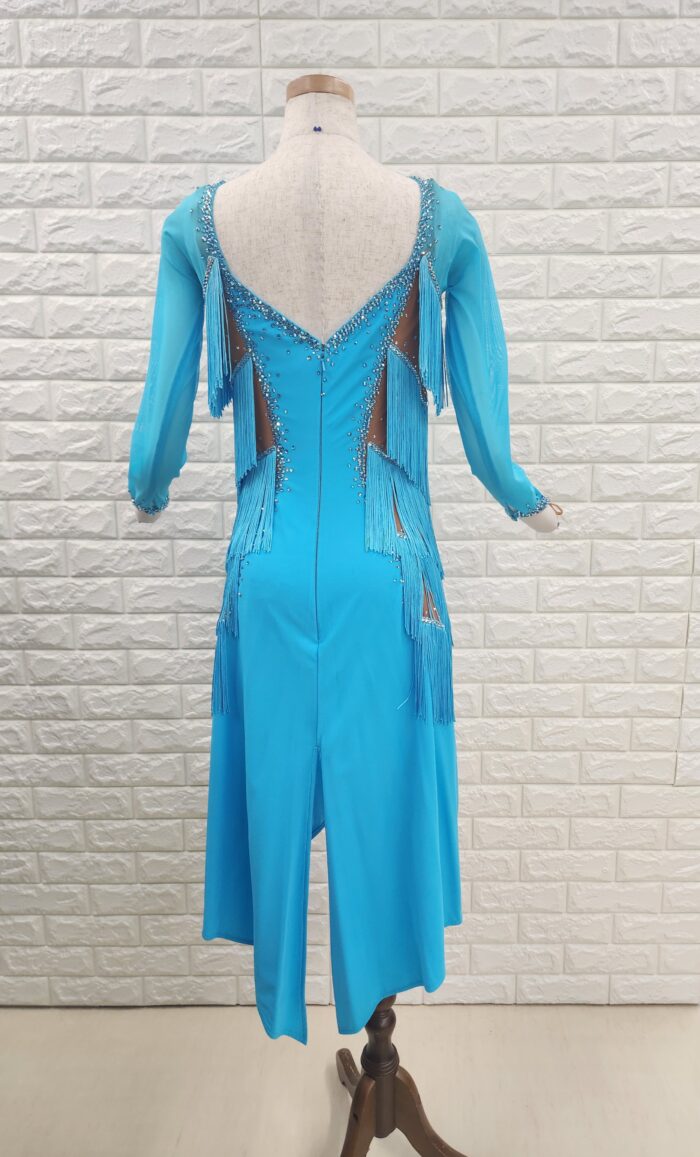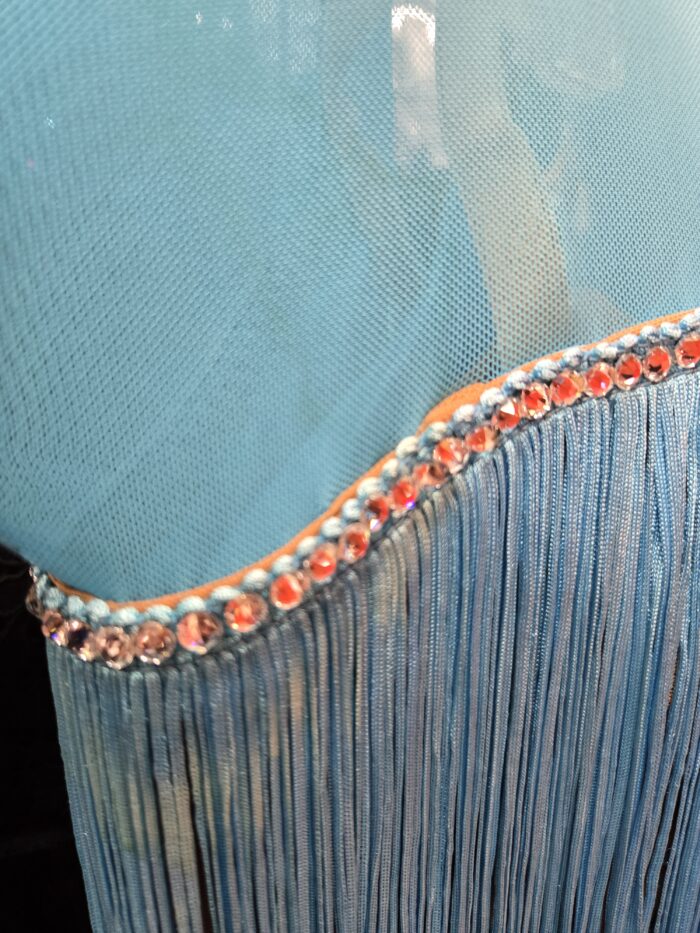 スタッフコメント:脇にフリンジのついたラテンドレスですが、全体的にシンプルなので 石付がOKなトライアルでも使用できそうです。