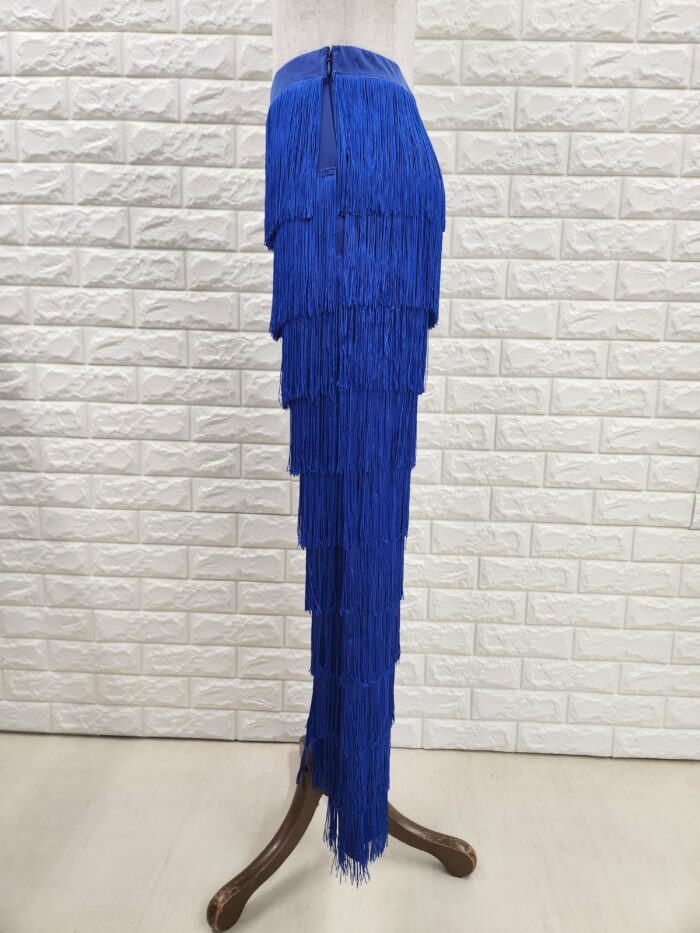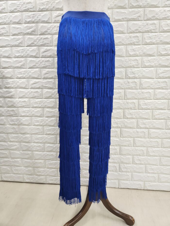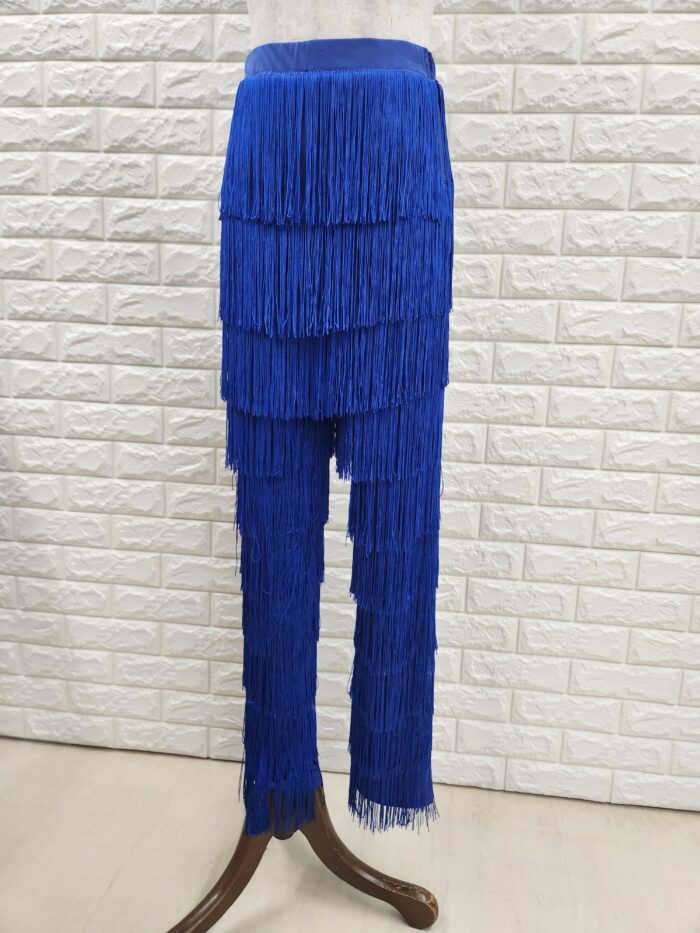 スタッフコメント: 動きを大胆に大きく見せたい、全体にフリンジのついたダンスパンツです。