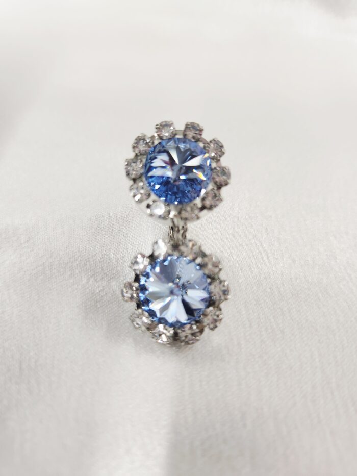 スタッフコメント:ライトサファイアの小ぶりイヤリングです。耳たぶが小さくて大きなイヤリングが難しい・派手なものは苦手、という方にオススメ。シリコンゴムがついているので、耳が痛くなりにくい。