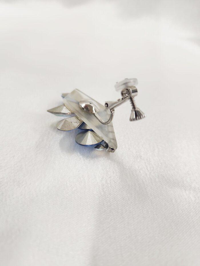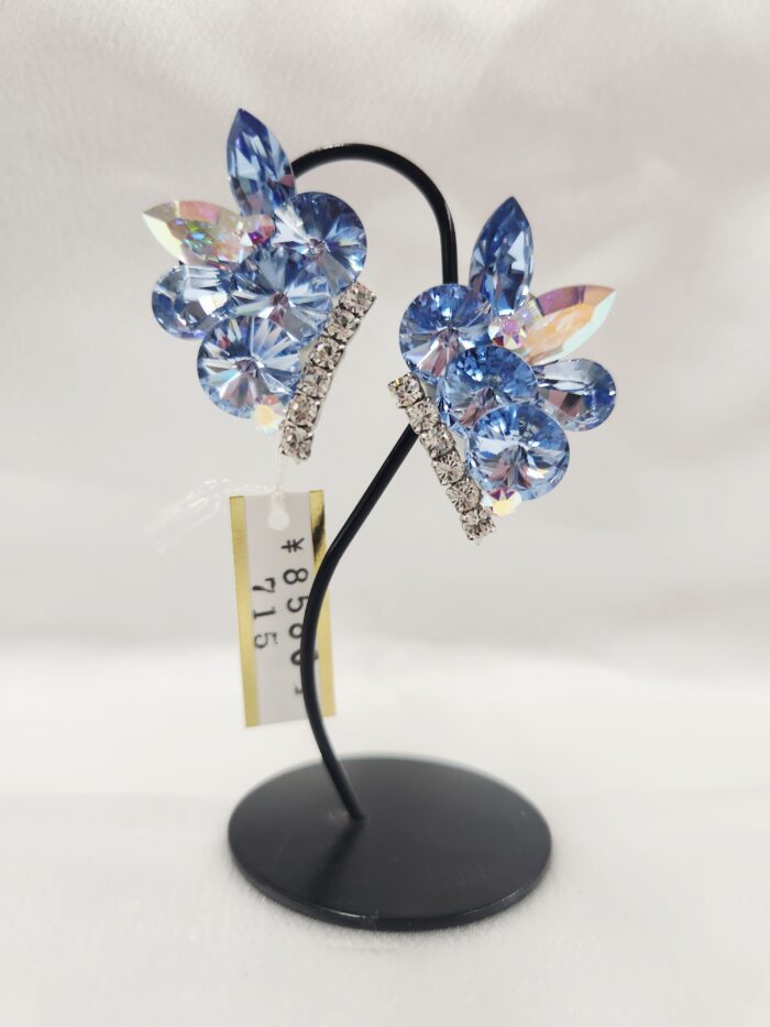 スタッフコメント:ライトサファイアとオーロラのコンビイヤリング。ピッタリ耳におさまるので、競技にも最適。シリコンゴムがついているので、耳が痛くなりにくい。