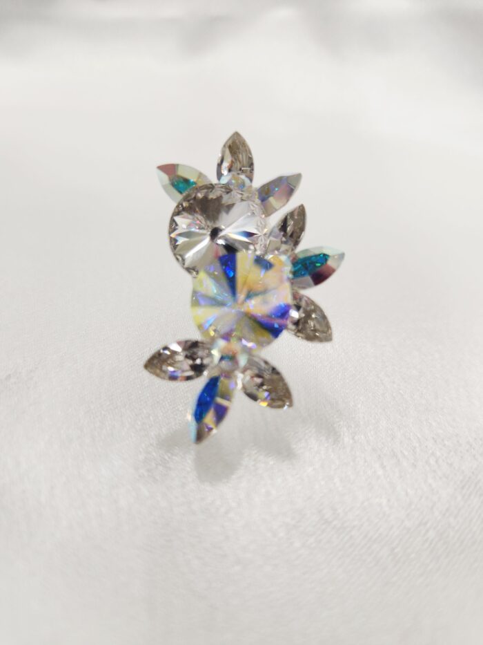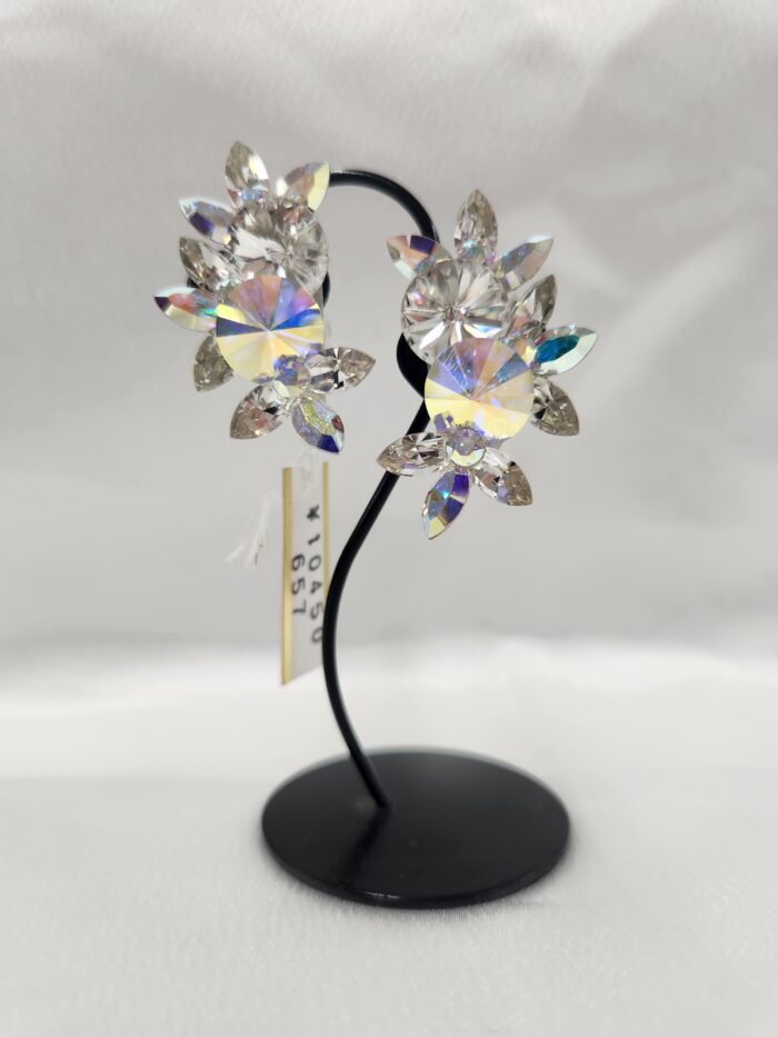 スタッフコメント:耳にピッタリとつくタイプ。クリスタルABとクリスタルストーンが遠目に映えます。競技にも最適。シリコンゴムがついているので、耳が痛くなりにくい。