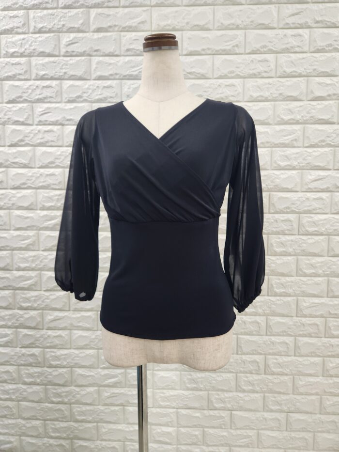 スタッフコメント:クレープ素材を使用してるので、吸汗性・速乾性にも優れている1点です。カシュクールは胸元が開かない様にバスト下に切替をつけました。レッスンだけでなくパーティーにも使えます。