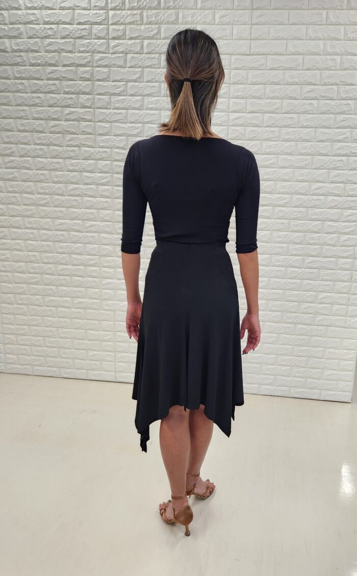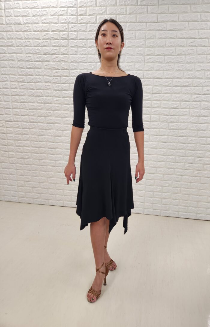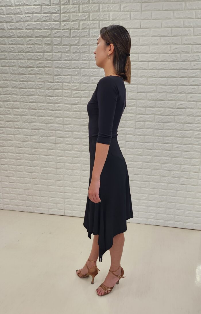 ●スタイル:アシンメトリーで足の露出も少ないレッスン用ラテンスカートです。