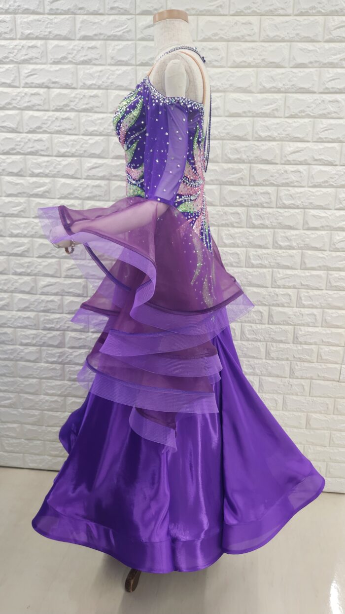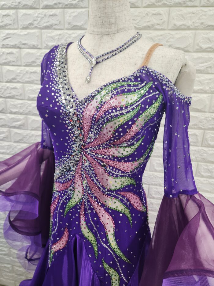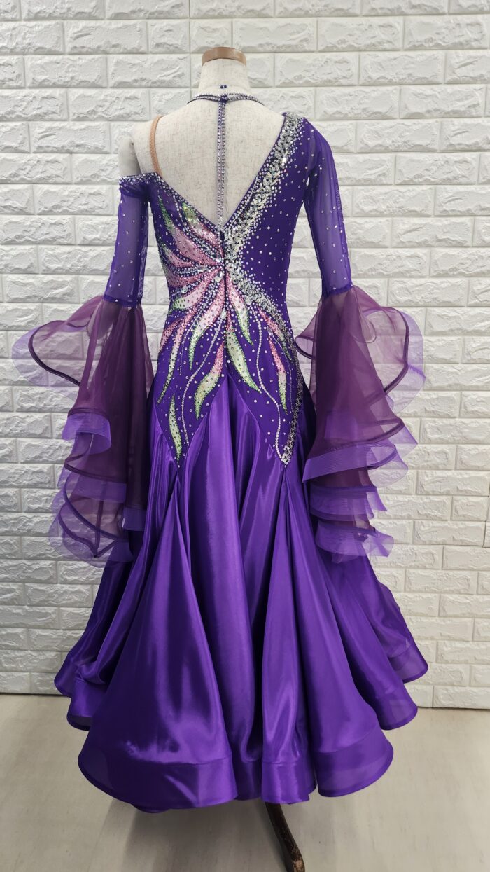 【試着・レンタル・購入】社交ダンスドレス Lサイズ パープル スタンダードドレス806-L