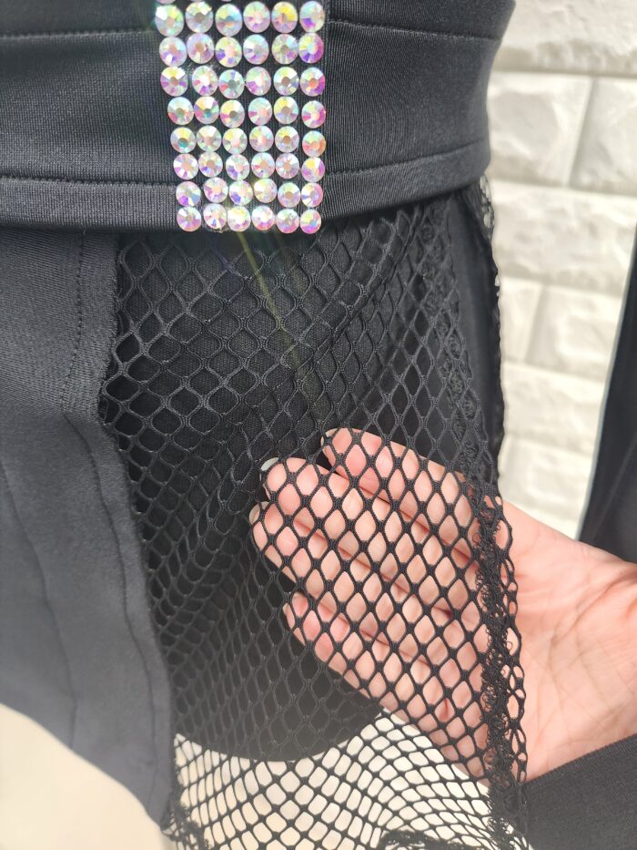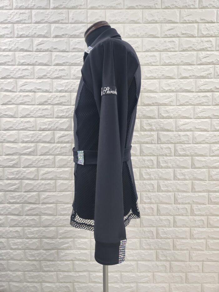 スタッフのコメント:脇がメッシュになっていて、とてもオシャレです。部分的にストーンを施し、存在感をアピール!競技にもデモにもご利用いただけます。