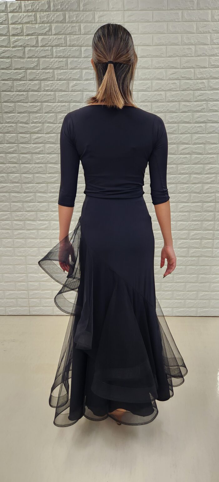 コメント:クレープとソフトチュールのコンビネーションで裾に5cm巾のホースヘアがついており、ドレスの様な動きで高級感があります。