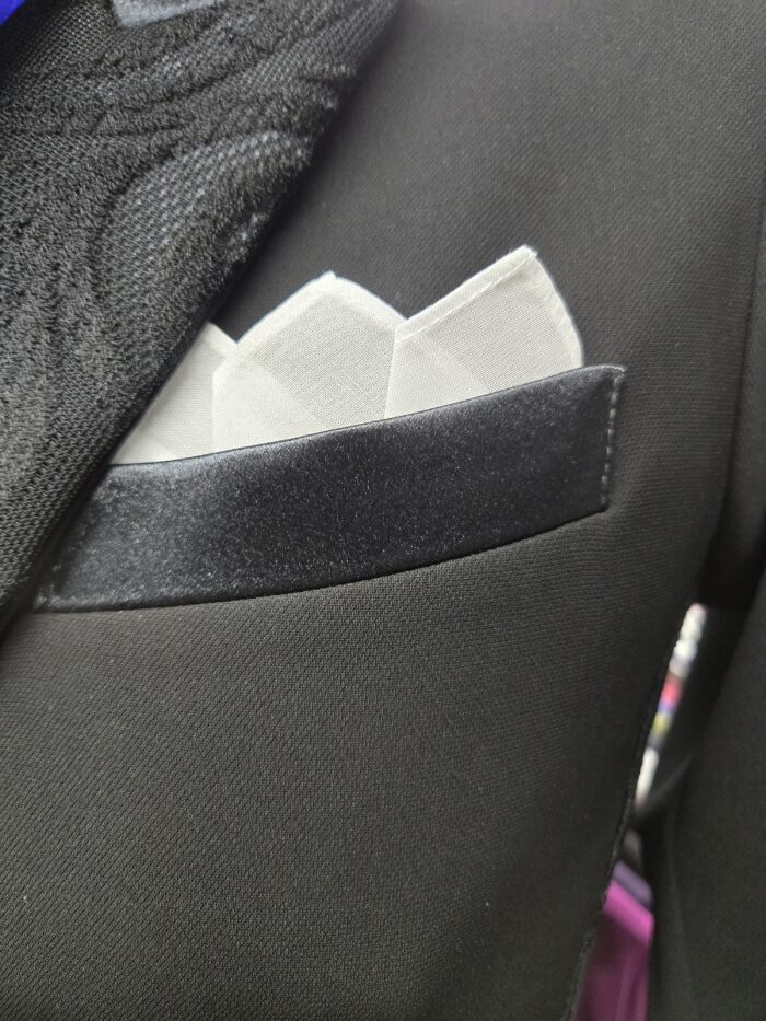 スタッフコメント:燕尾服の必須アイテムでもあるポケットチーフ。チーフが折られているので 燕尾服だけでなく、ジャケットやタキシードの胸ポケットに差し込むだけ。 競技だけでなくデモやパーティーにもご使用いただけます。